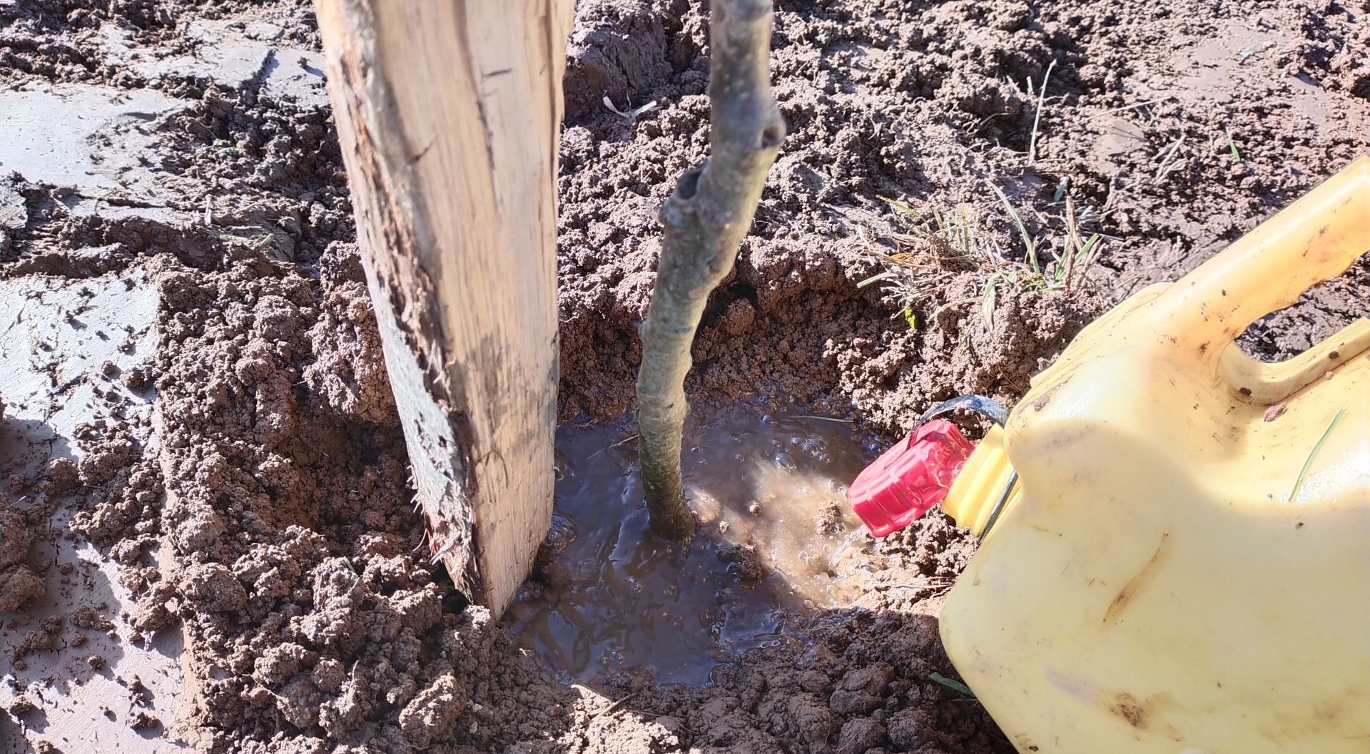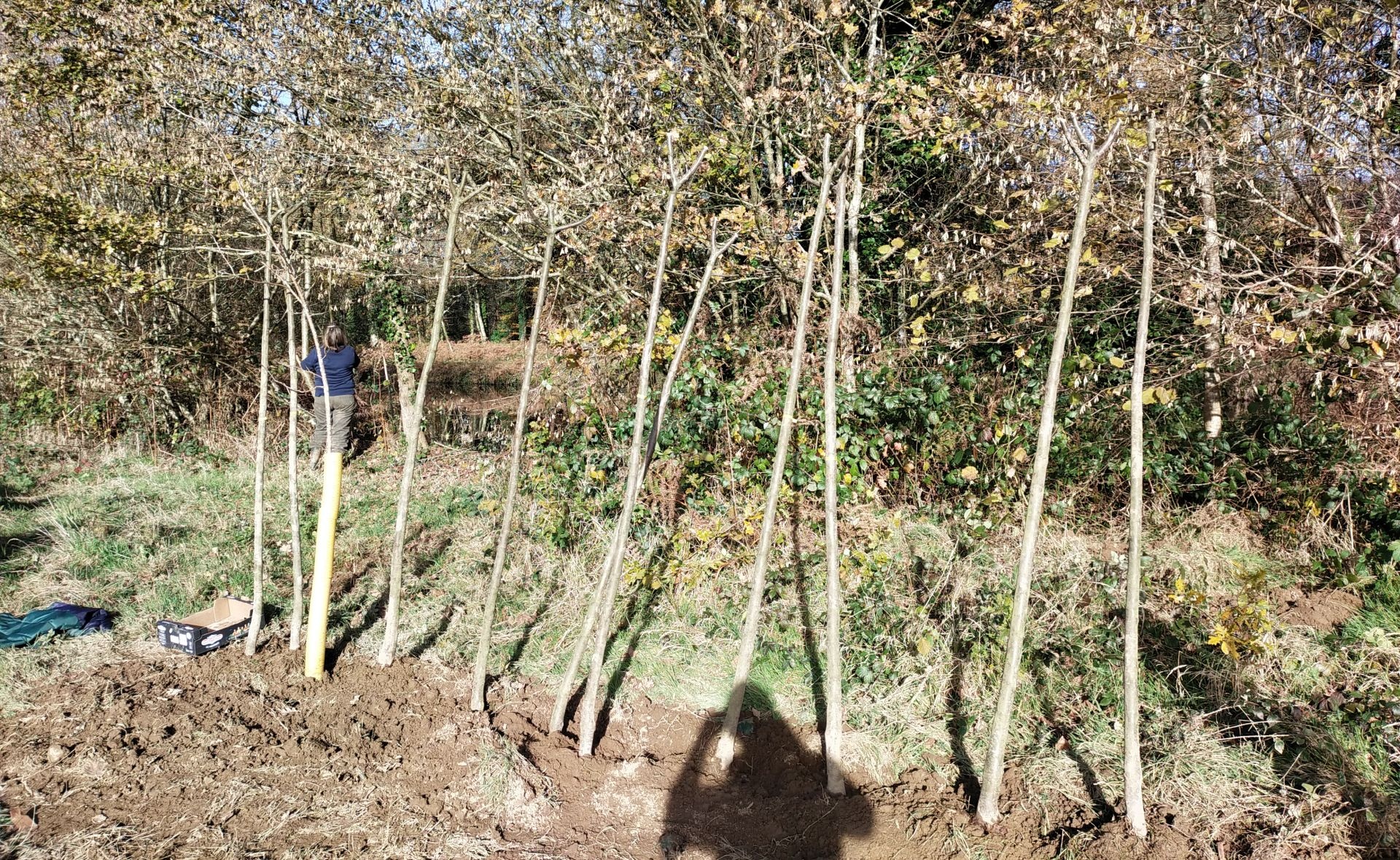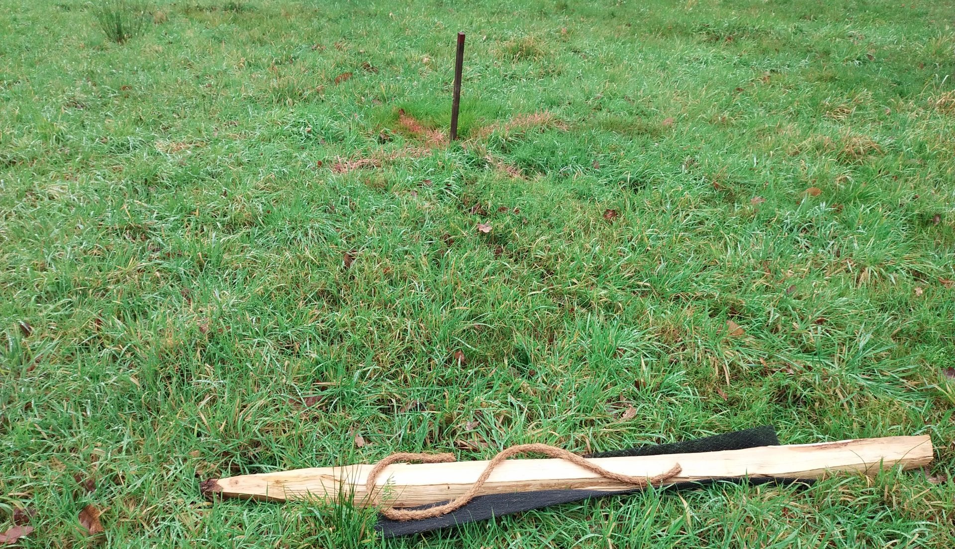 Pour la plantation, il faut de quoi proteger le jeune arbre, qui n'aura pas de solides racines avant quelques années, des animaux (chevreuil et autre), du vent, du soleil.